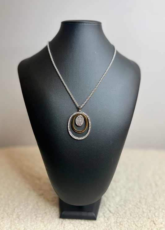 COLAR PENDENTE DOURADO E PRATA COM BRILHOS - BASTTA
