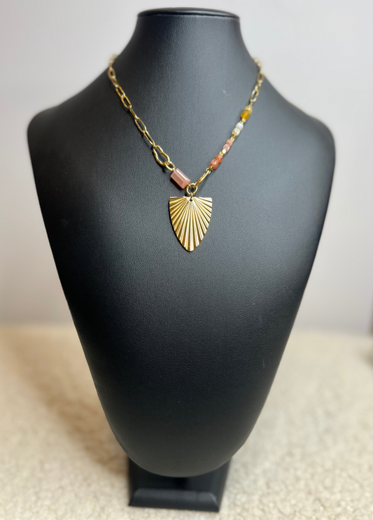 COLAR DOURADO E PEDRAS COM PENDENTE - BASTTA