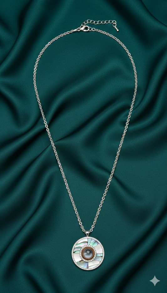 COLAR MANDALA EM AÇO INOXIDÁVEL COM MADRE PÉROLA - BASTTA