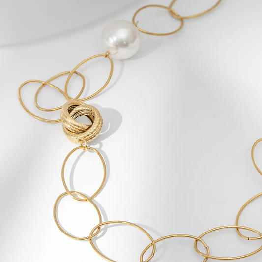 COLAR COMPRIDO TIPO CORRENTE COM PÉROLAS - BASTTA