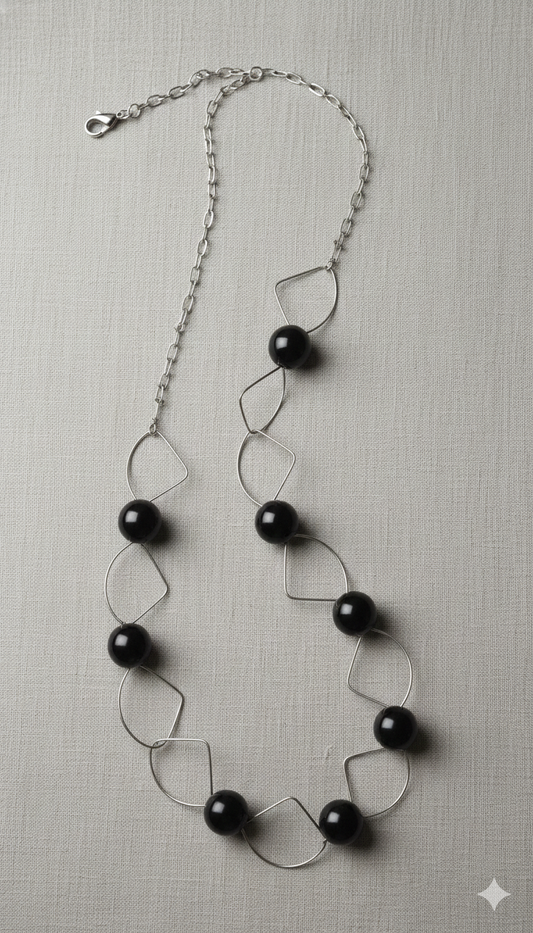 COLAR COM ESFERAS PRETAS E GEOMETRIA PRATEADA - BASTTA
