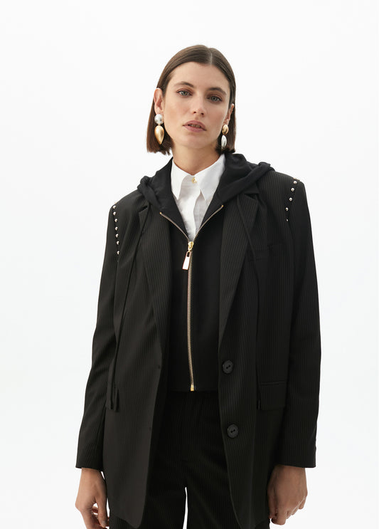 BLAZER LISTRADO COM CAPUZ REMOVÍVEL E TACHAS REDONDAS - LOLA CASADEMUNT
