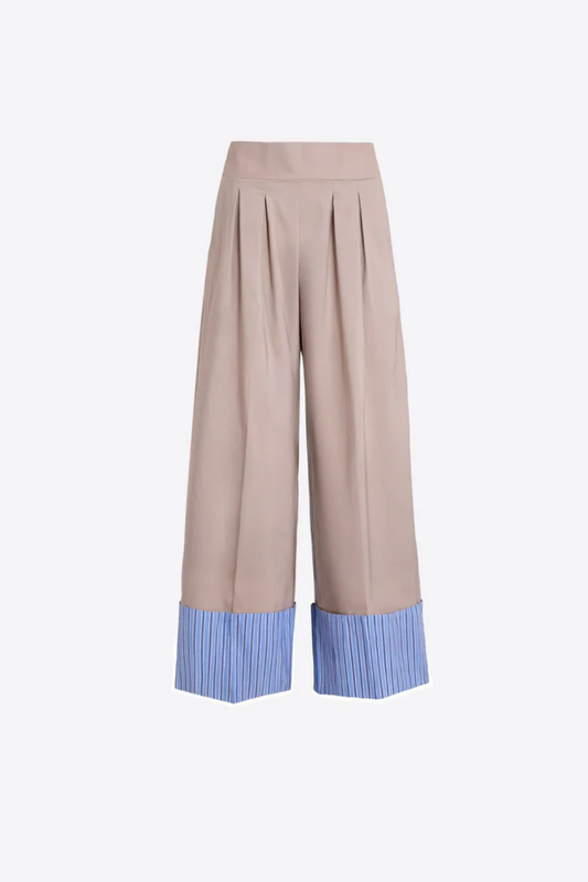 CALÇAS BEGE COM BAINHAS DOBRADA ÀS RISCAS AZUIS - VILAGALLO