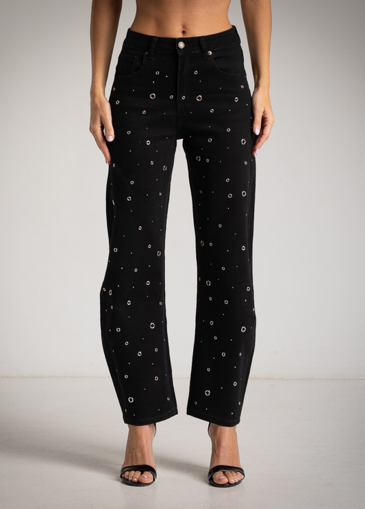 CALÇAS DE GANGA LARGAS COM STRASS À FRENTE - MIMI MUA
