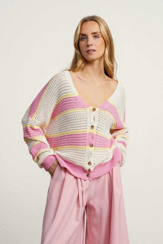 CARDIGAN DE LISTRAS BICOLOR - LOLA CASADEMUNT