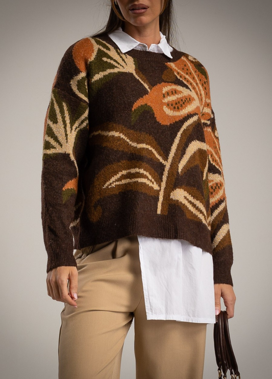 CAMISOLA DE MALHA BOTÂNICA COM LIGEIRO BRILHO - ALBANOS