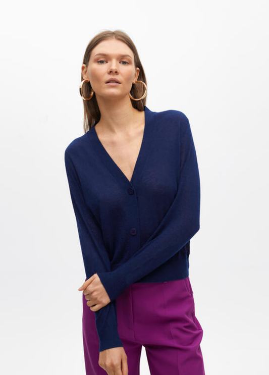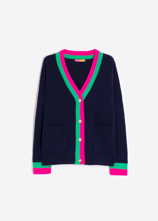 MALHA ALINA CARDIGAN MARINHO ROSA VERDE - VILAGALLO