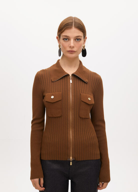 CARDIGAN COM FECHO DOURADO E GOLA - LOLA CASADEMUNT