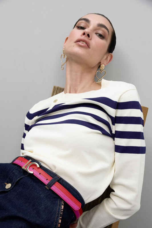 CINTO REVERSÍVEL CORAL E LONA LISTRADA COM FIVELA OVAL LC - LOLA CASADEMUNT