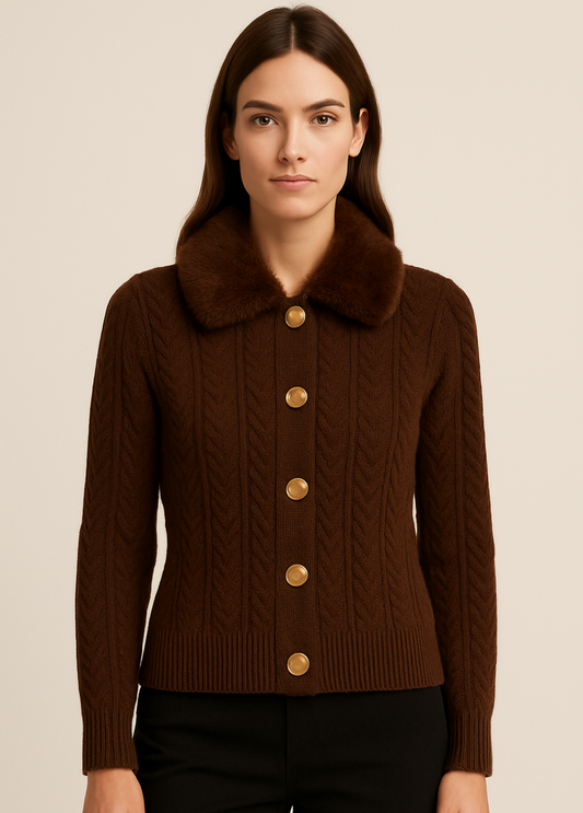 CASACO DE MALHA COM GOLA DE PÊLO SINTÉTICO - ALIBY