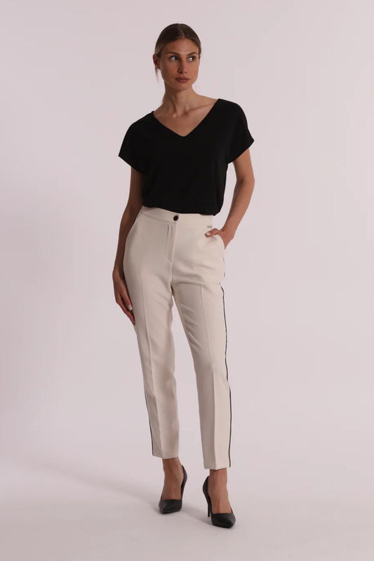 CALÇAS DE FATO BRANCO PÉROLA COM VIVO A PRETO - MIMI MUA