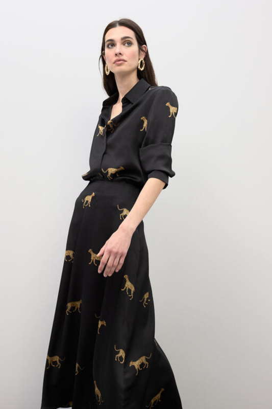 SAIA MIDI EM CETIM COM ESTAMPADO DE LEOPARDOS - LOLA CASADEMUNT
