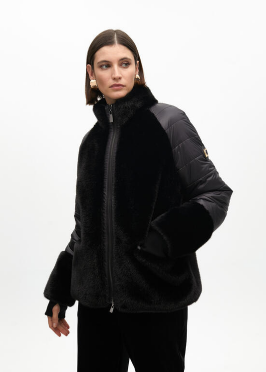 BLUSÃO PRETO COM PORMENORES EM PÊLO E MANGAS ALCOCHADAS - LOLA CASADEMUNT