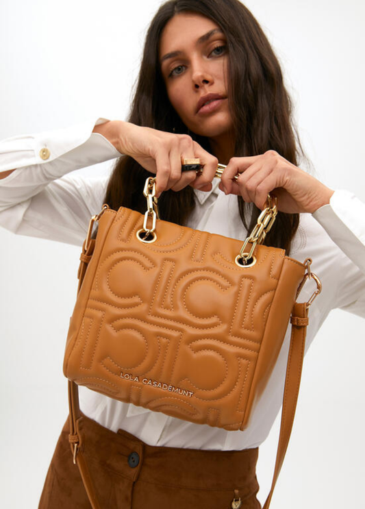 MALA CAMEL COM ALÇA ENTRAÇADA E LOGÓTIPO - LOLA CASADEMUNT