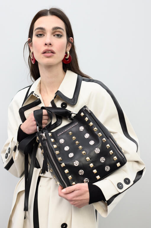 BOLSA DE OMBRO COM TACHAS DOURADAS E PRATEADAS - LOLA CASADEMUNT