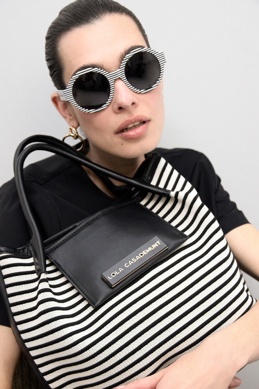 SHOPPER DE TECIDO LISTRADO COM EFEITO DE PELE - LOLA CASADEMUNT