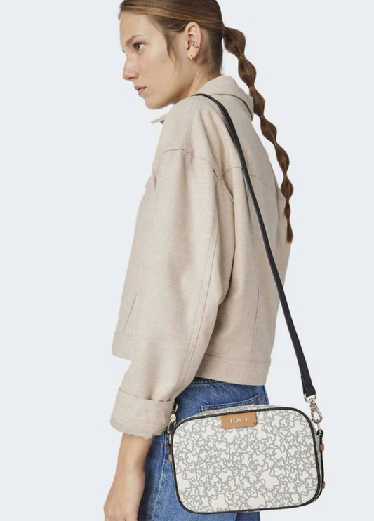 MALA A TIRACOLO MEDIA AUDREE KAOS ICON PRETA E BEGE - TOUS