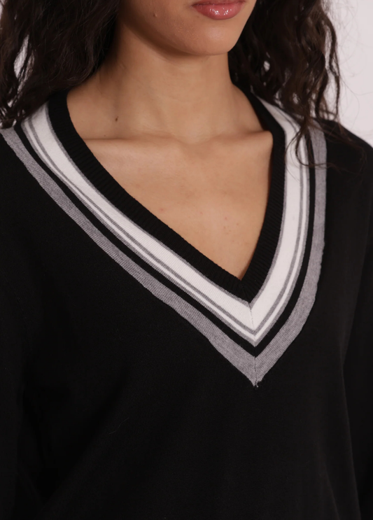 CAMISOLA DE MALHA DECOTE EM V TRICOLOR - MIMI MUA