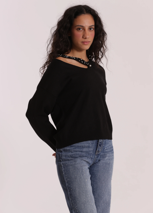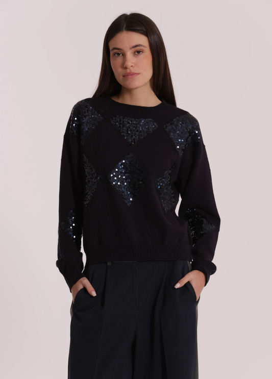 CAMISOLA DE MALHA COM PORMENORES EM LANTEJOULAS - MIMI MUA