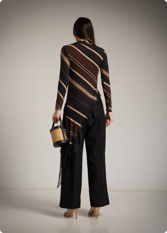 CAMISOLA ASSIMÉTRICA RISCAS E RENDA - ALBANOS
