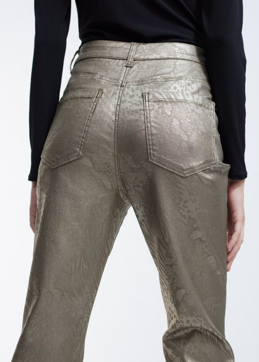 CALÇAS ECOPELE DOURADAS ANIMAL PRINT - LOLA CASADEMUNT