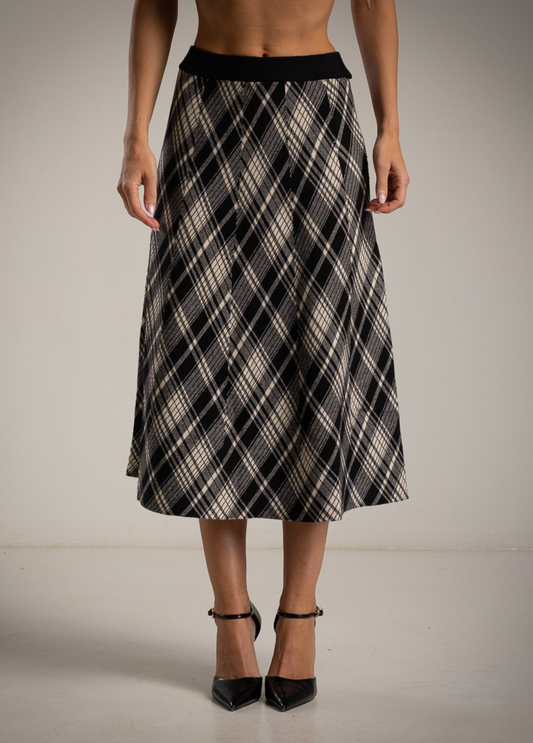 SAIA MIDI DE MALHA COM XADREZ E ELÁSTICO NA CINTURA - ALBANOS
