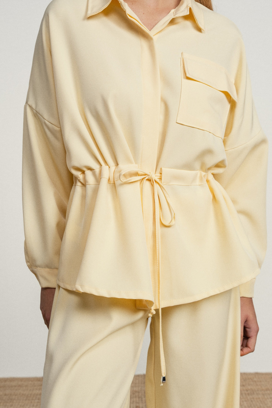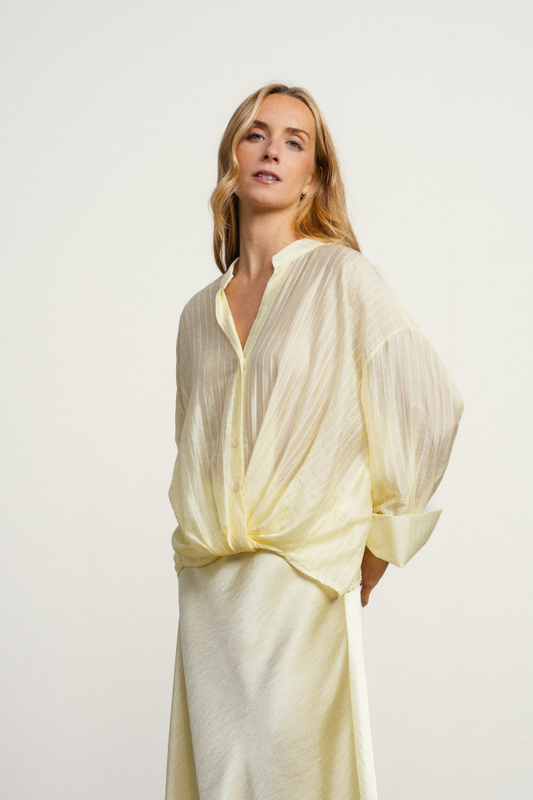 CAMISA SEMI TRANSPARENTE COM RISCAIS VERTICAIS E NÓ NO CÓS - SMF