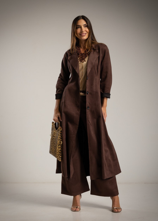 CASACO TIPO TRENCH COAT CASTANHO TOQUE MACIO - ALBANOS