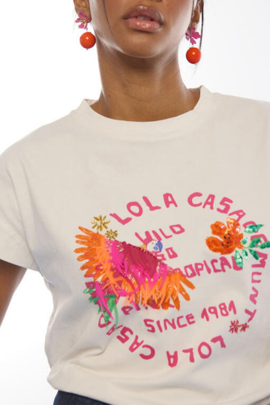T-SHIRT BRANCA COM ESTAMPADO TROPICAL - LOLA CASADEMUNT