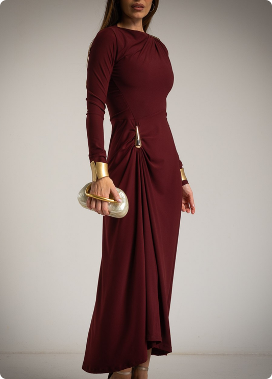 VESTIDO ELEGANTE COM APLICAÇÃO DOURADA - ALBANOS