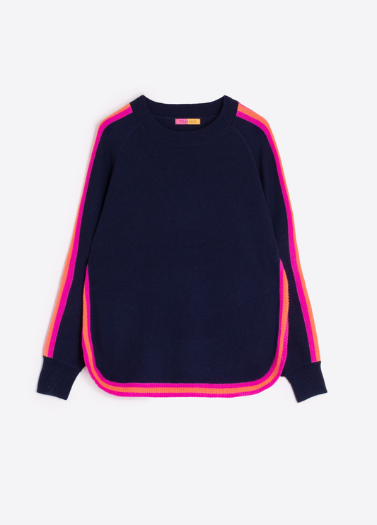 SUÉTER DE LÃ MISTA MARINHO COM ACABAMENTOS COLORIDOS - VILAGALLO