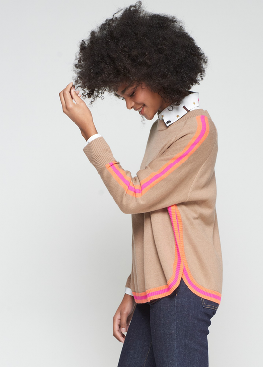 SUÉTER DE MALHA BEGE COM ACABAMENTO COLORIDO - VILAGALLO
