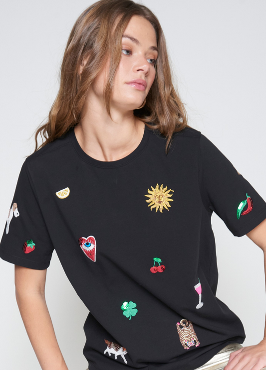 T-SHIRT PRETA COM PATCHES BORDADOS - VILAGALLO