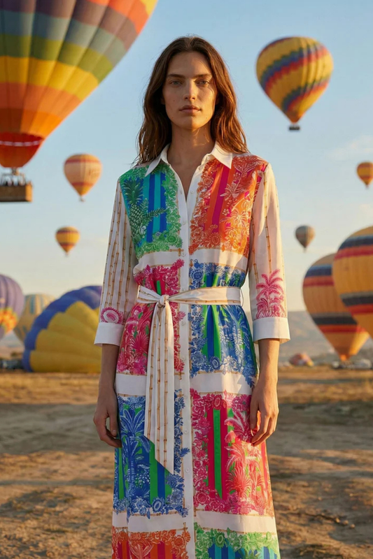 VESTIDO ÀS RISCAS ESTAMPADO " DOLCE FAR NIENTE" - VILAGALLO