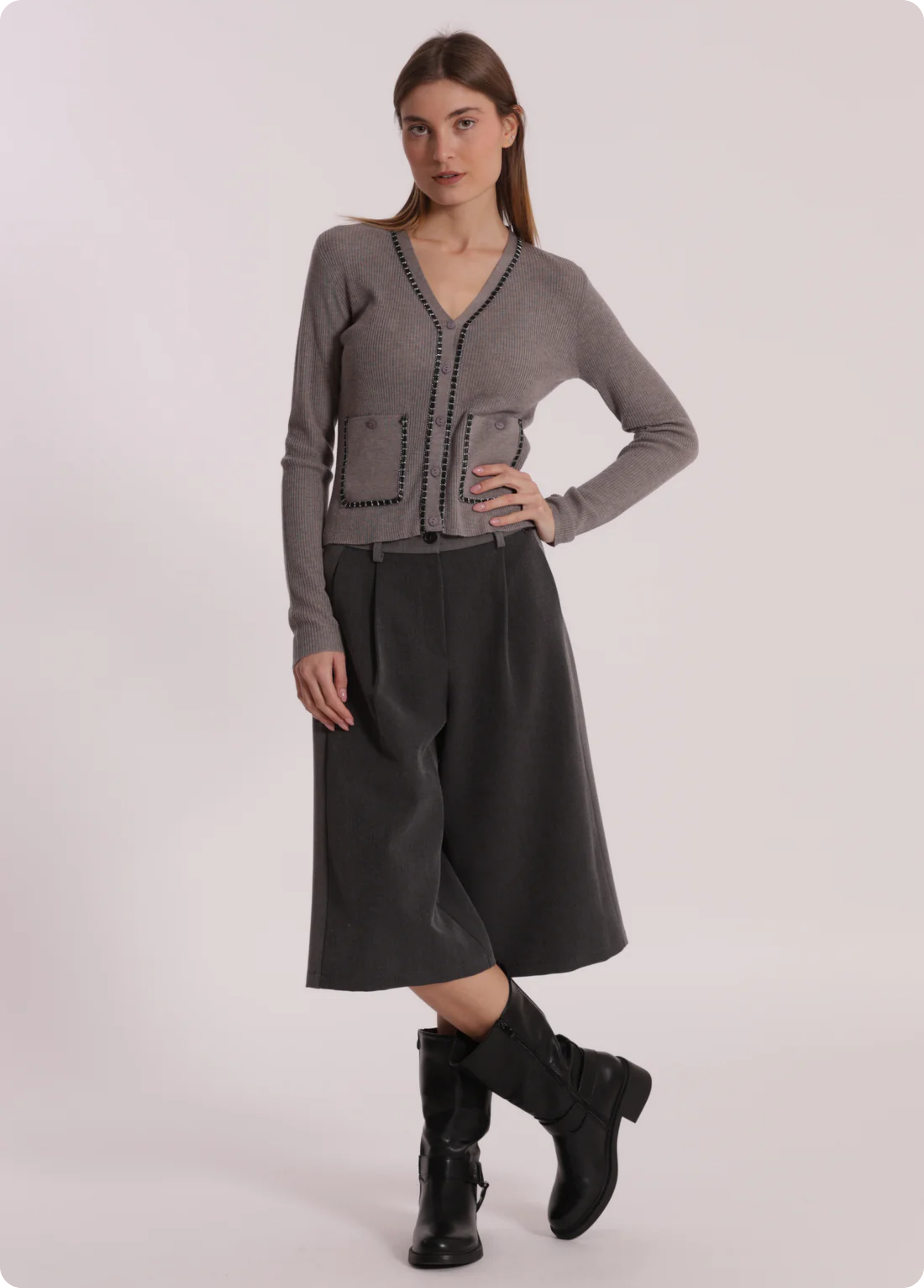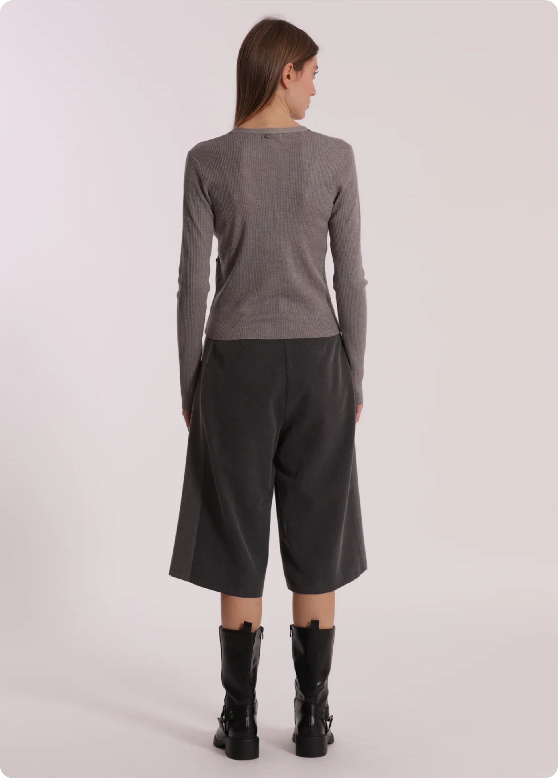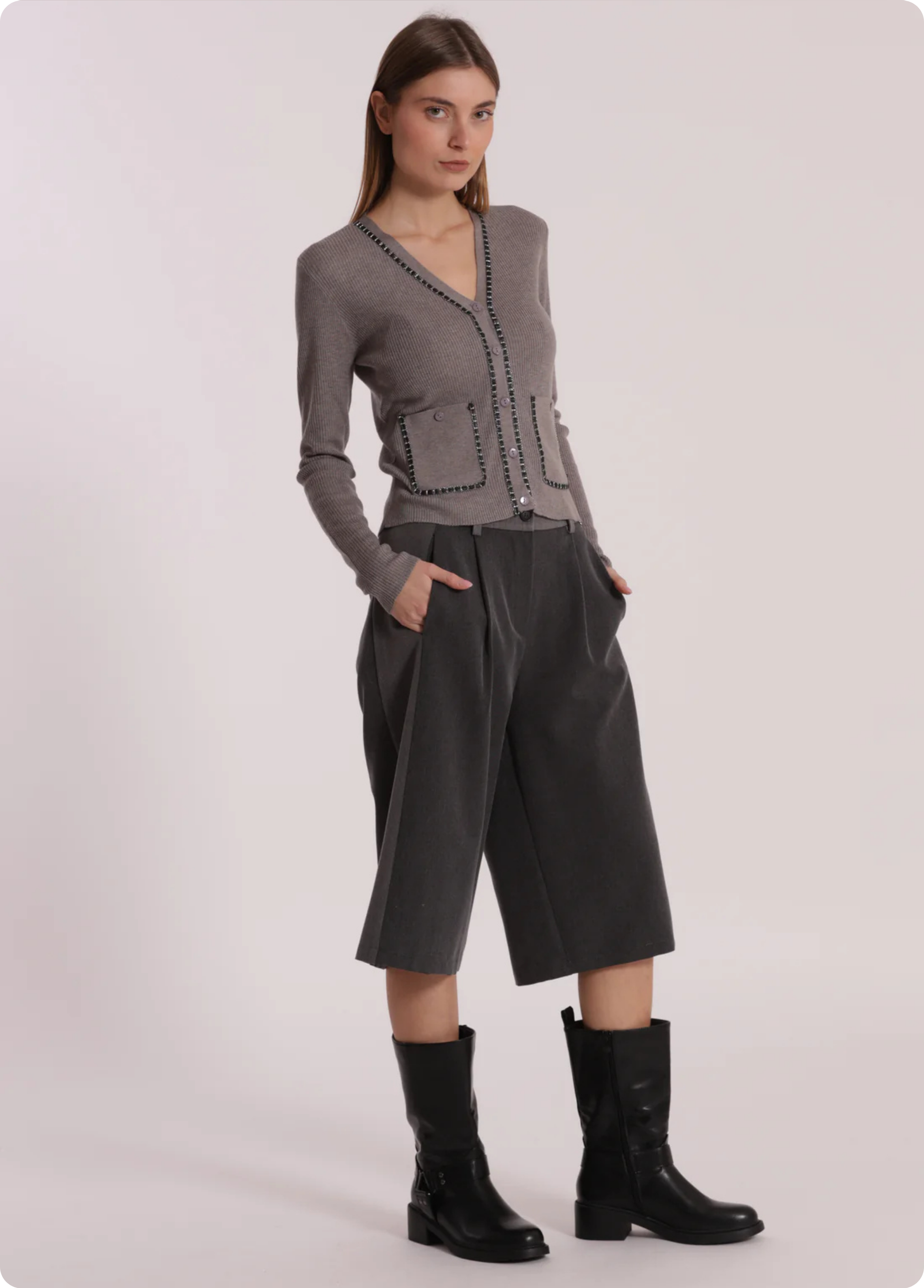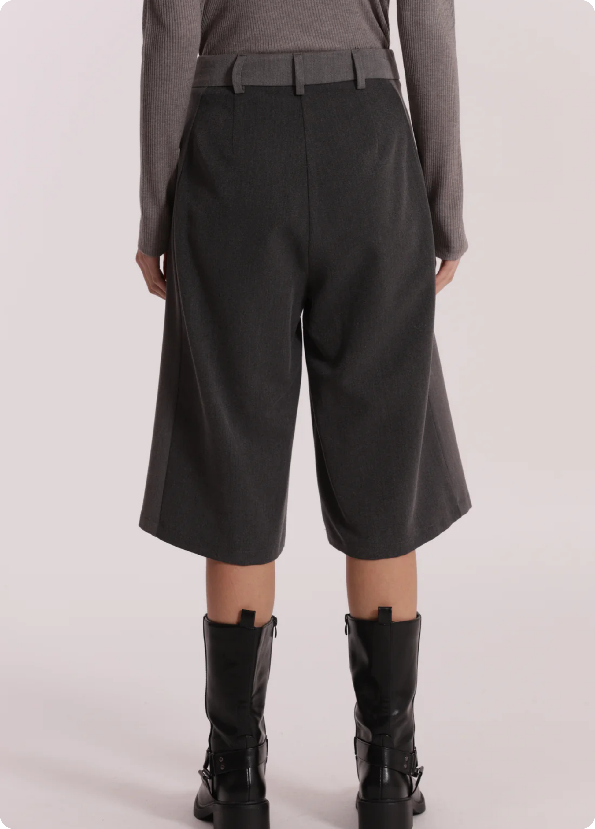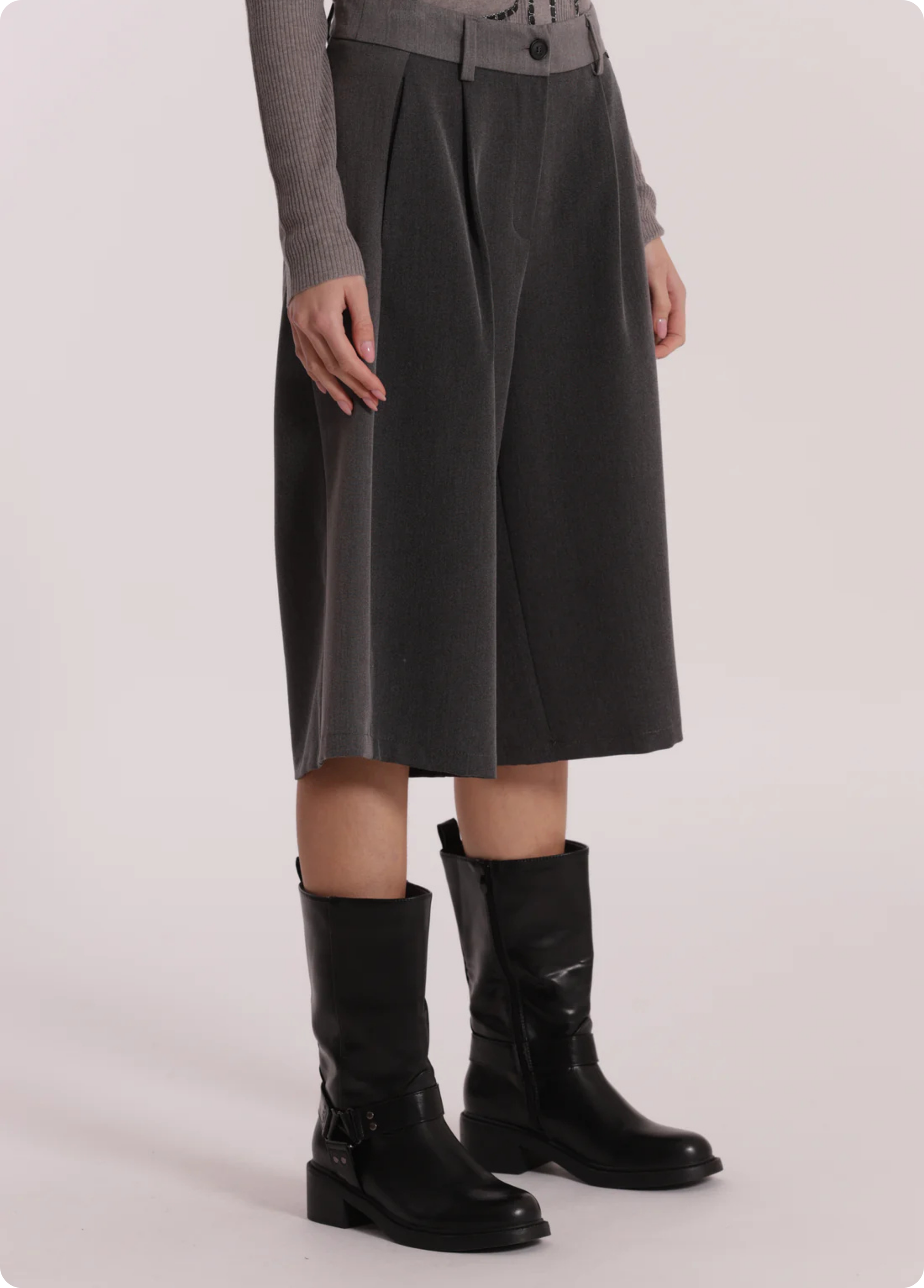 Bermuda de corte amplo e cintura subida, com pregas frontais que garantem conforto e um cair elegante. Uma peça versátil, ideal para looks sofisticados e contemporâneos, perfeita para usar do dia para a noite.
