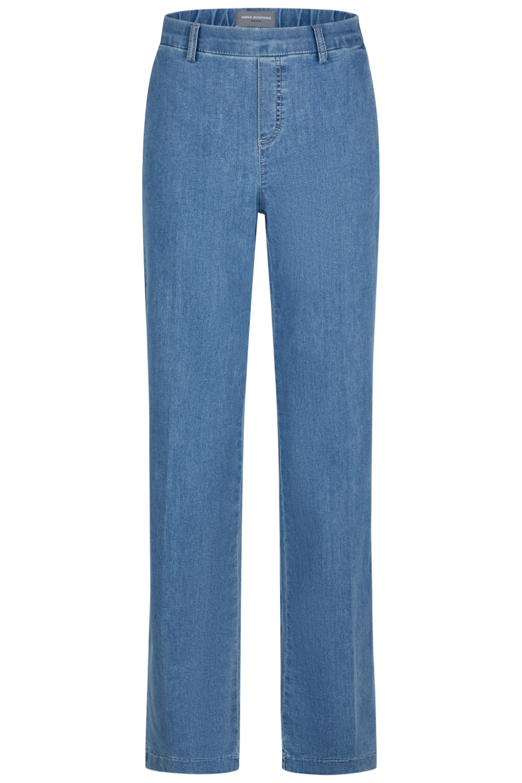 Calças de ganga Alemãs da Anna Montana, com corte direito, linha limpa e elegante que alonga a silhueta. Apresenta cintura média com cós estruturado e presilhas para cinto, fecho frontal discreto e bolsos traseiros embutidos que conferem um acabamento mais sofisticado.