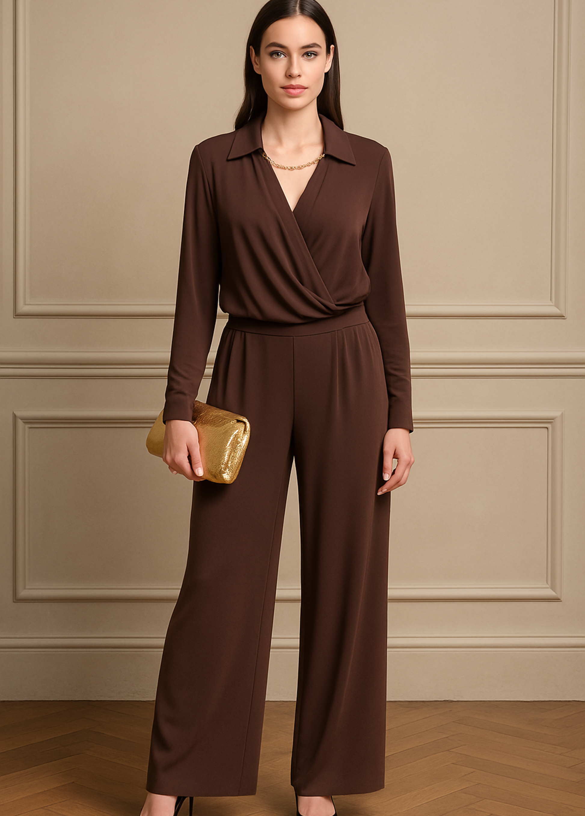 Calças pantalona da coleção italiana Operà, produzidas em Itália em 96% poliéster e 4% spandex. Possuem cintura elástica para maior conforto, pinças frontais e corte amplo que alonga a silhueta. Tecido leve e fluido, perfeito para coordenar com a blusa Operà ou outras peças elegantes.