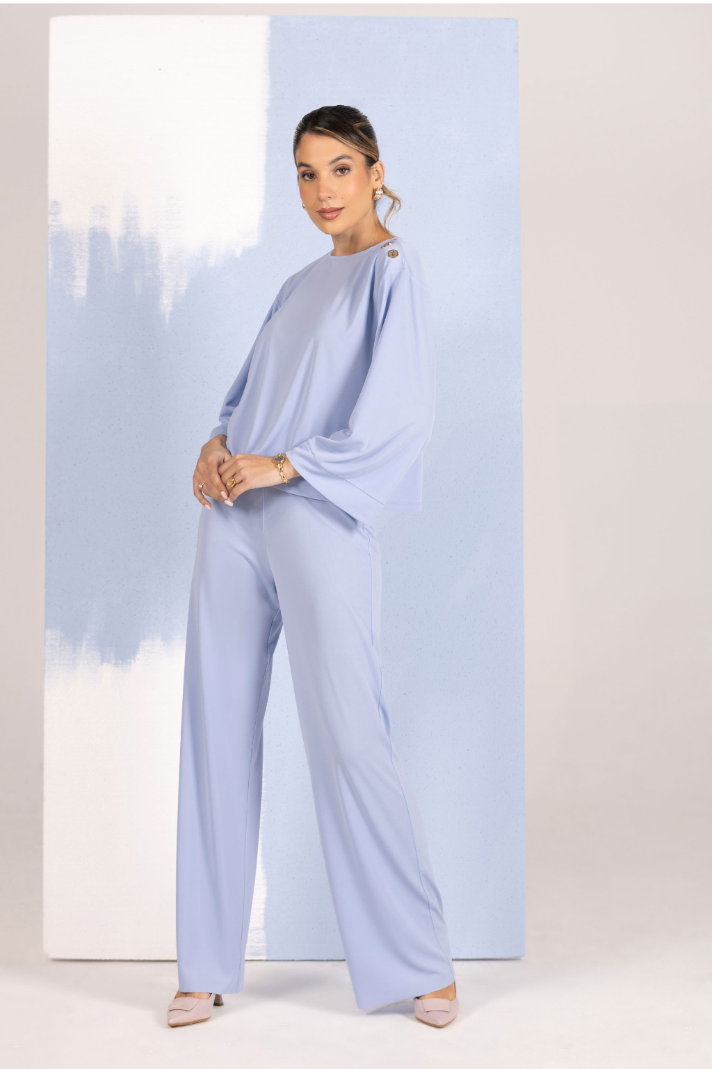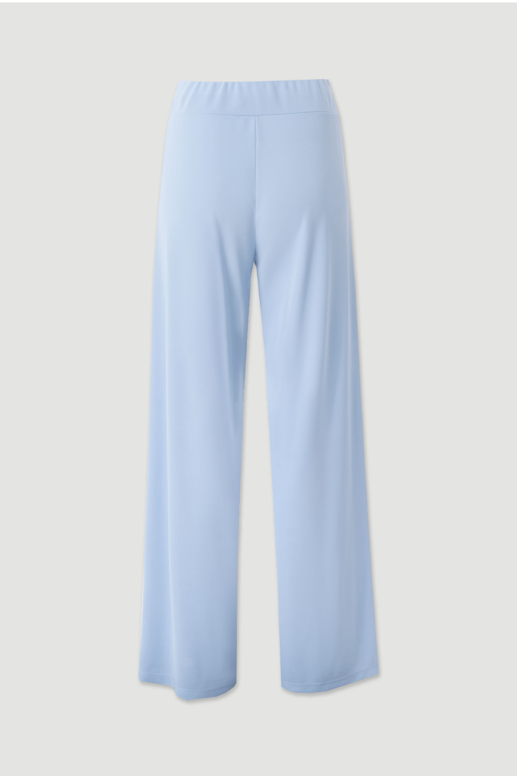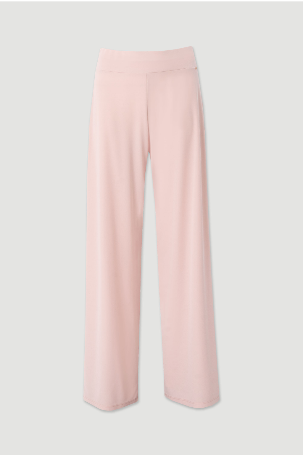 Calça feminina em malha fluida, com corte wide leg e cintura subida, pensada para proporcionar máximo conforto sem abdicar da elegância. O cós liso garante um ajuste cuidado, enquanto a perna larga cria um cair leve e alonga visualmente a silhueta. Uma peça versátil, ideal para looks descontraídos ou coordenados mais sofisticados, consoante a combinação.