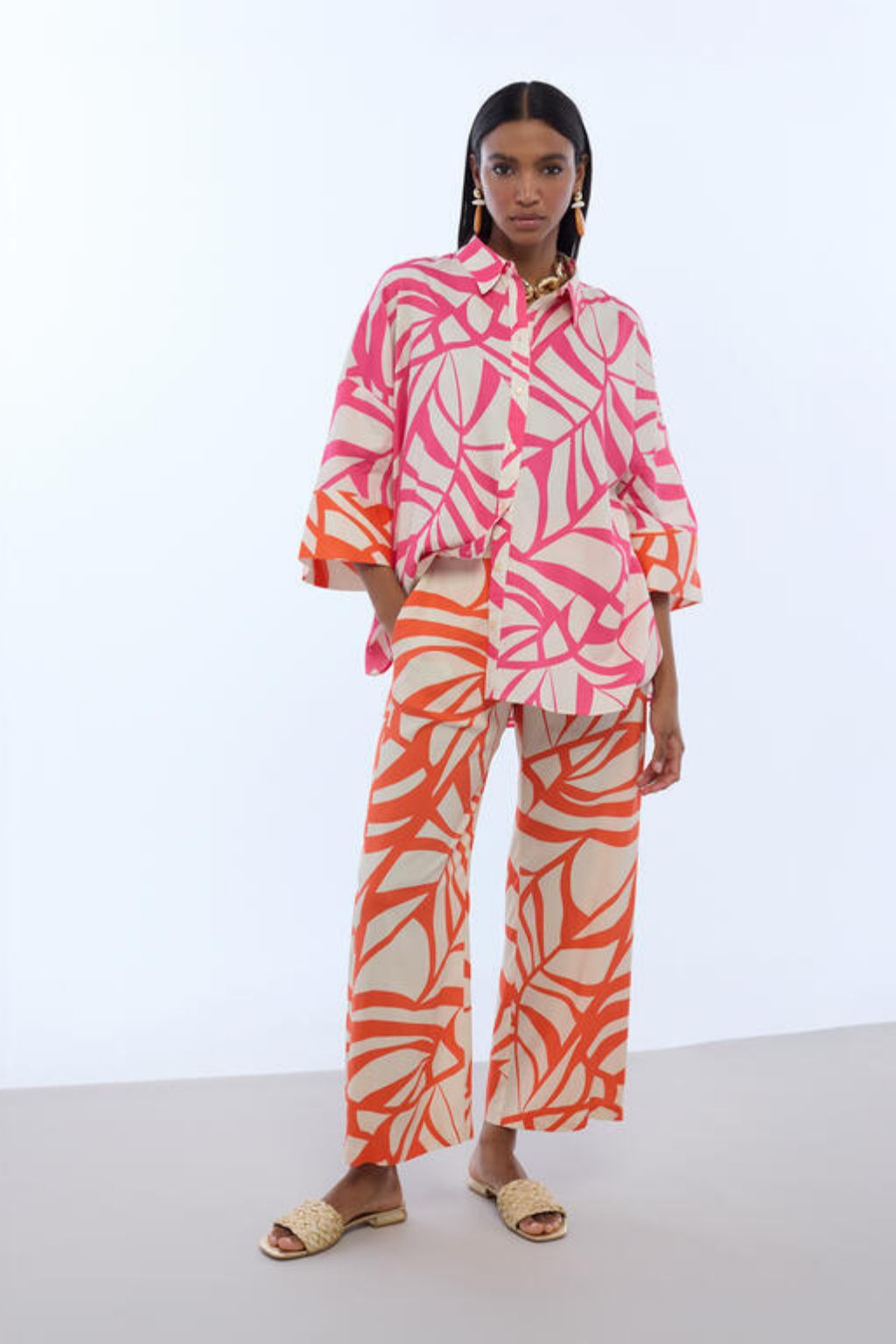 CALÇAS ESTAMPADAS LARANJA E CRU - LOLA CASADEMUNT