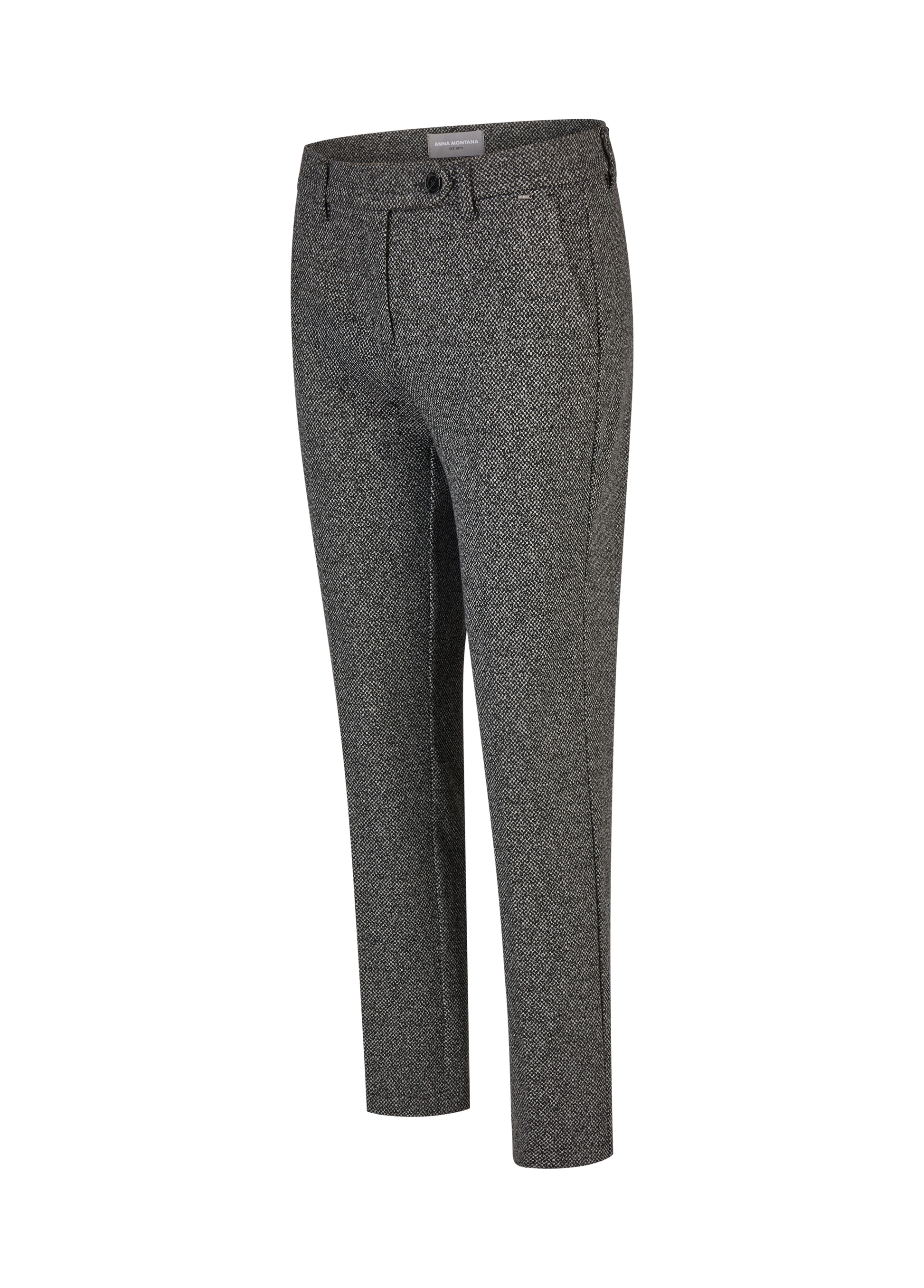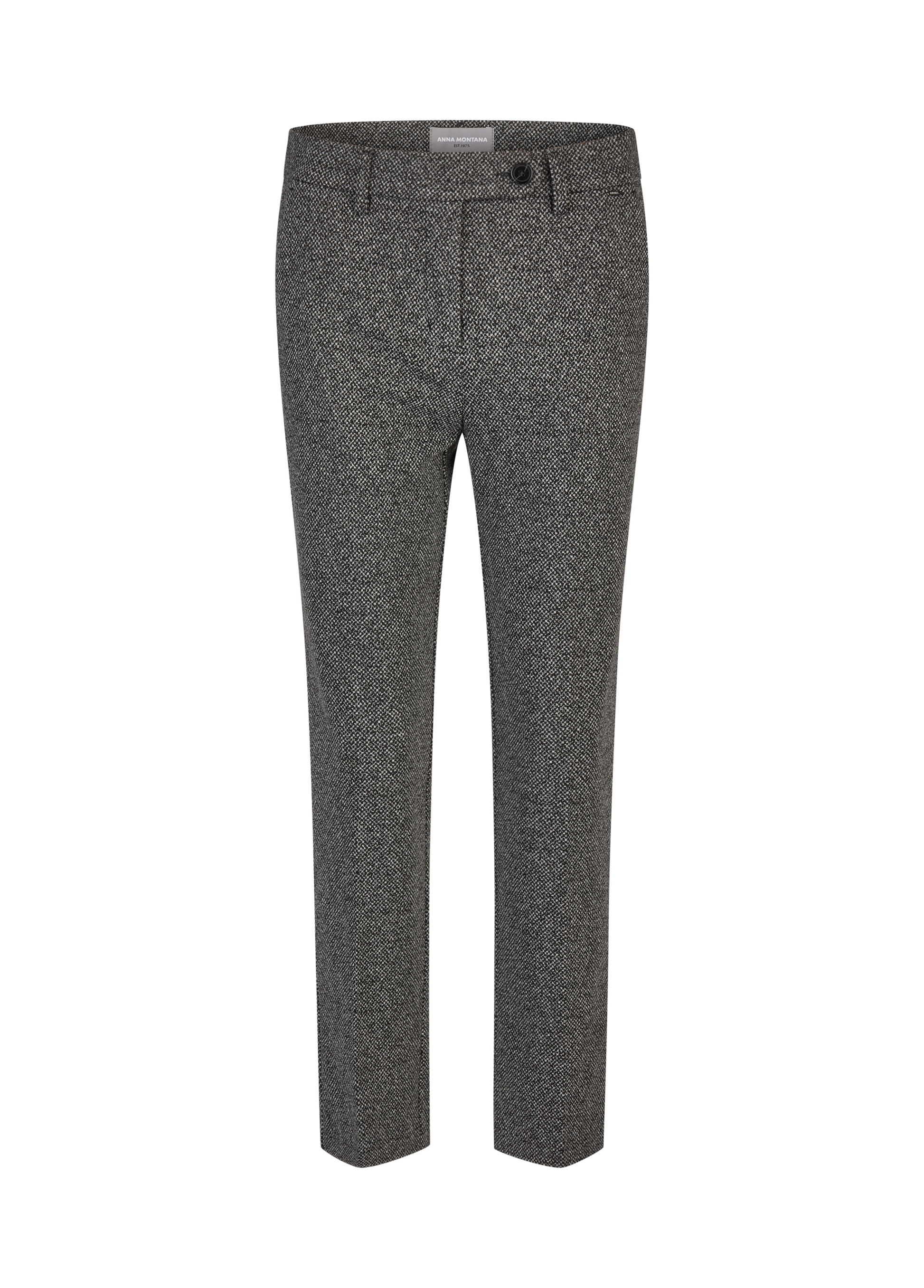 Estas calças Anna Montana distinguem-se pelo seu corte elegante e tecido estruturado em tom preto&branco texturado, ideal para um visual sofisticado e confortável. Com um design intemporal, apresentam cintura média, fecho frontal e bolsos laterais discretos, adaptando-se perfeitamente ao dia de trabalho ou a um look urbano mais moderno. O tecido combina suavidade e resistência, oferecendo um toque de classe à mulher contemporânea.