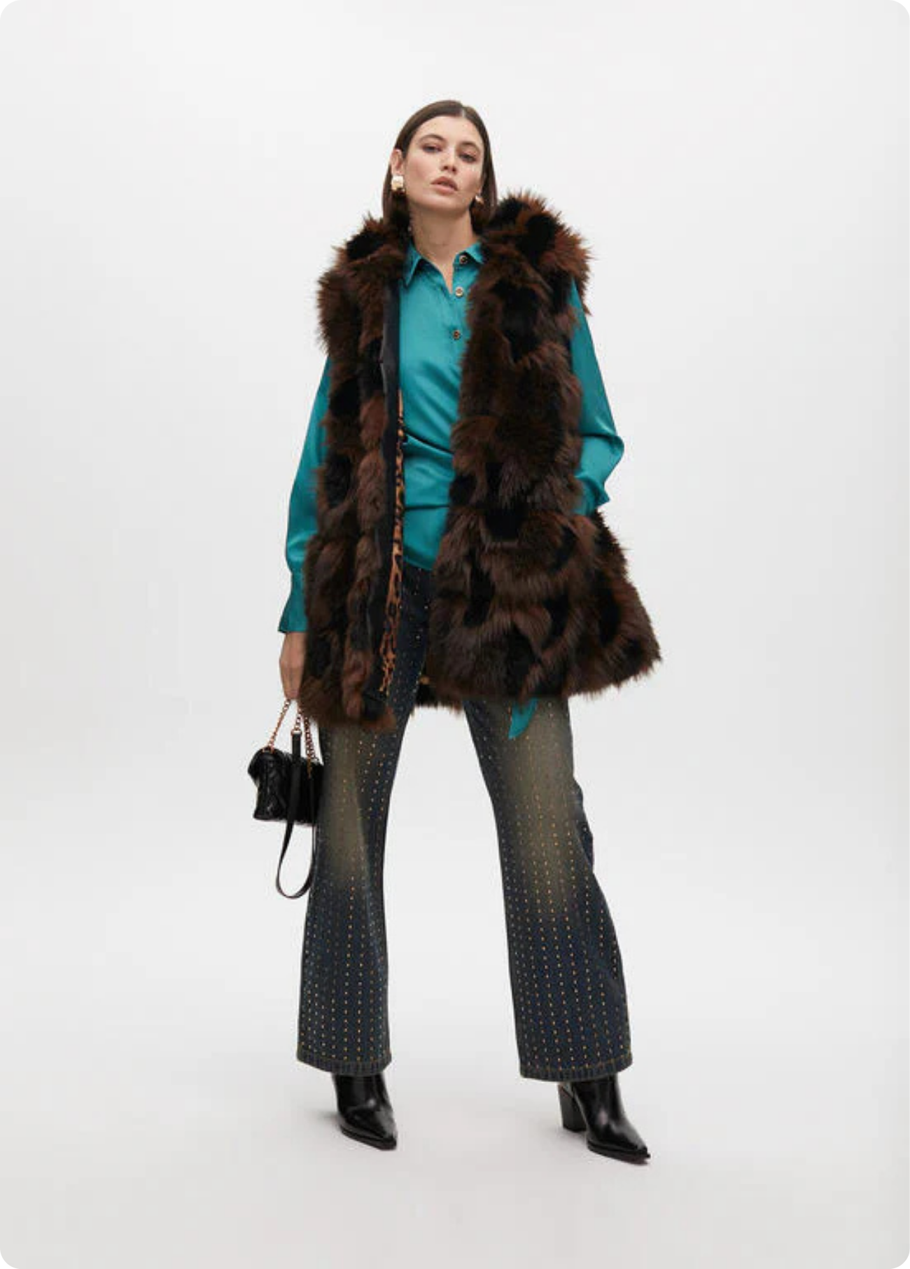 Camisa em cetim verde com acabamento acetinado, de corte elegante e contemporâneo. Possui botões frontais e detalhe lateral em laço que valoriza a silhueta, conferindo sofisticação e feminilidade ao look. Uma peça versátil, perfeita para coordenados de trabalho ou eventos especiais, trazendo cor e elegância ao guarda-roupa.