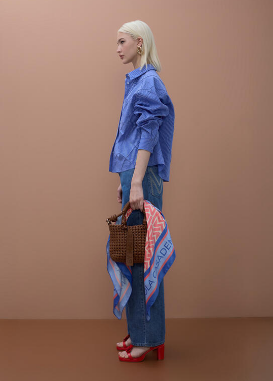 CAMISA OVERSIZE EM POPELINE COM TEXTURA DE LOSANGULOS - LOLA CASADEMUNT