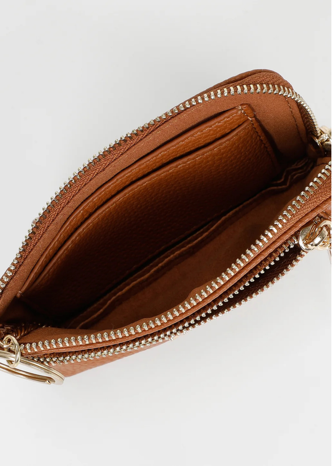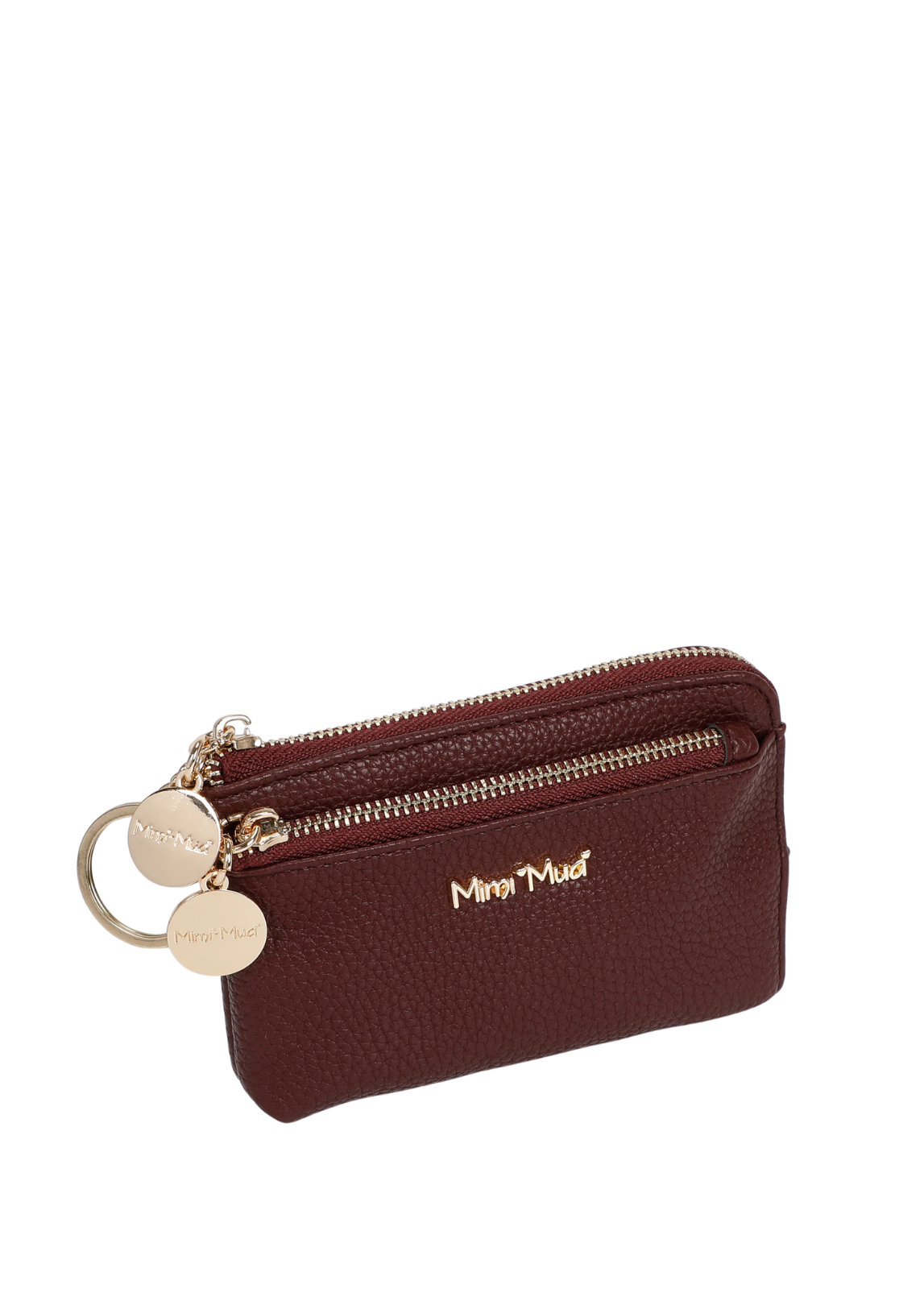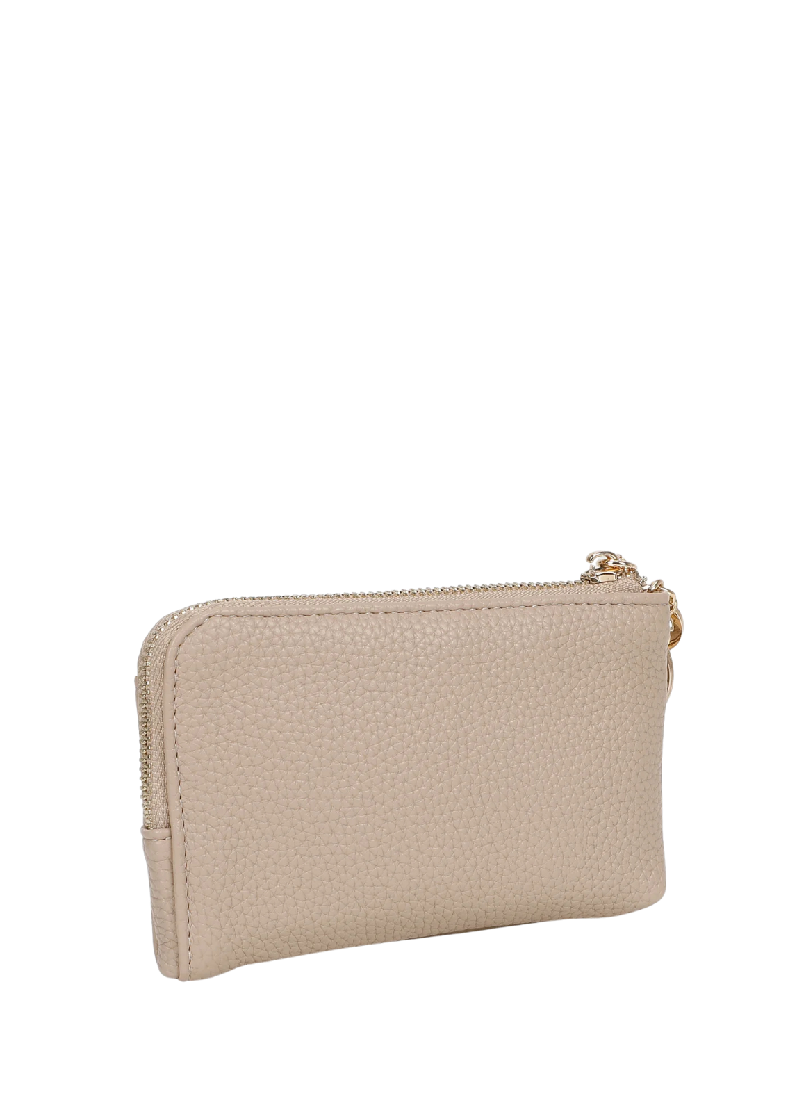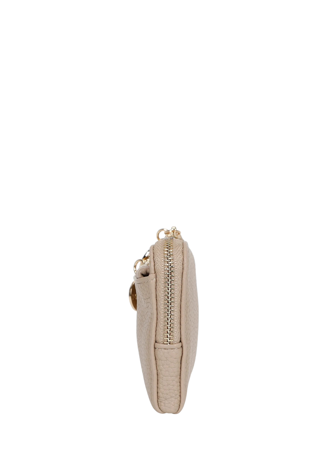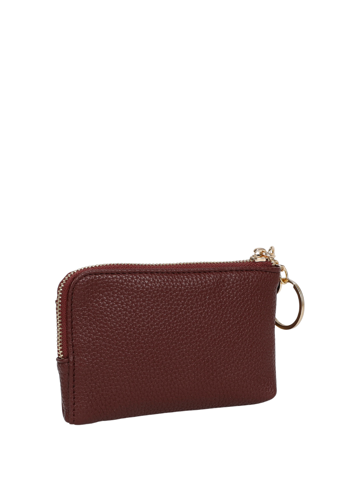 Porta-moedas compacto e sofisticado, disponível em três cores versáteis. Confeccionado em material de toque suave com acabamento texturizado, apresenta fecho de correr duplo para melhor organização. Inclui argola metálica com detalhe decorativo, ideal para usar como porta-chaves ou para prender à mala. Um acessório prático e elegante para o dia a dia.