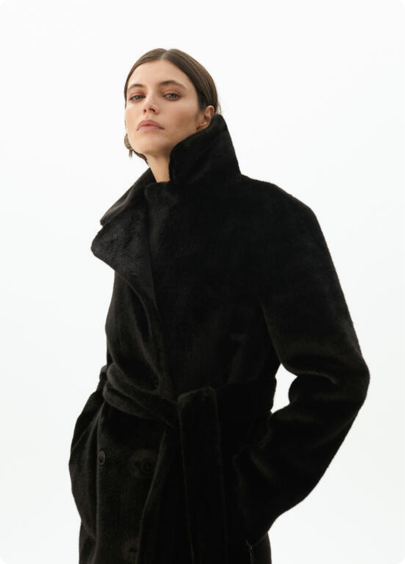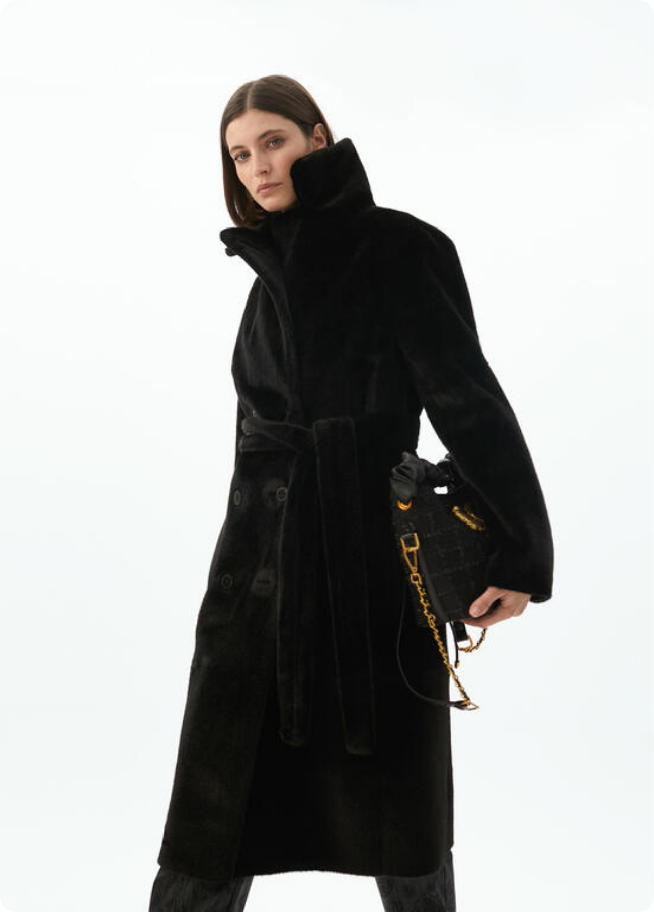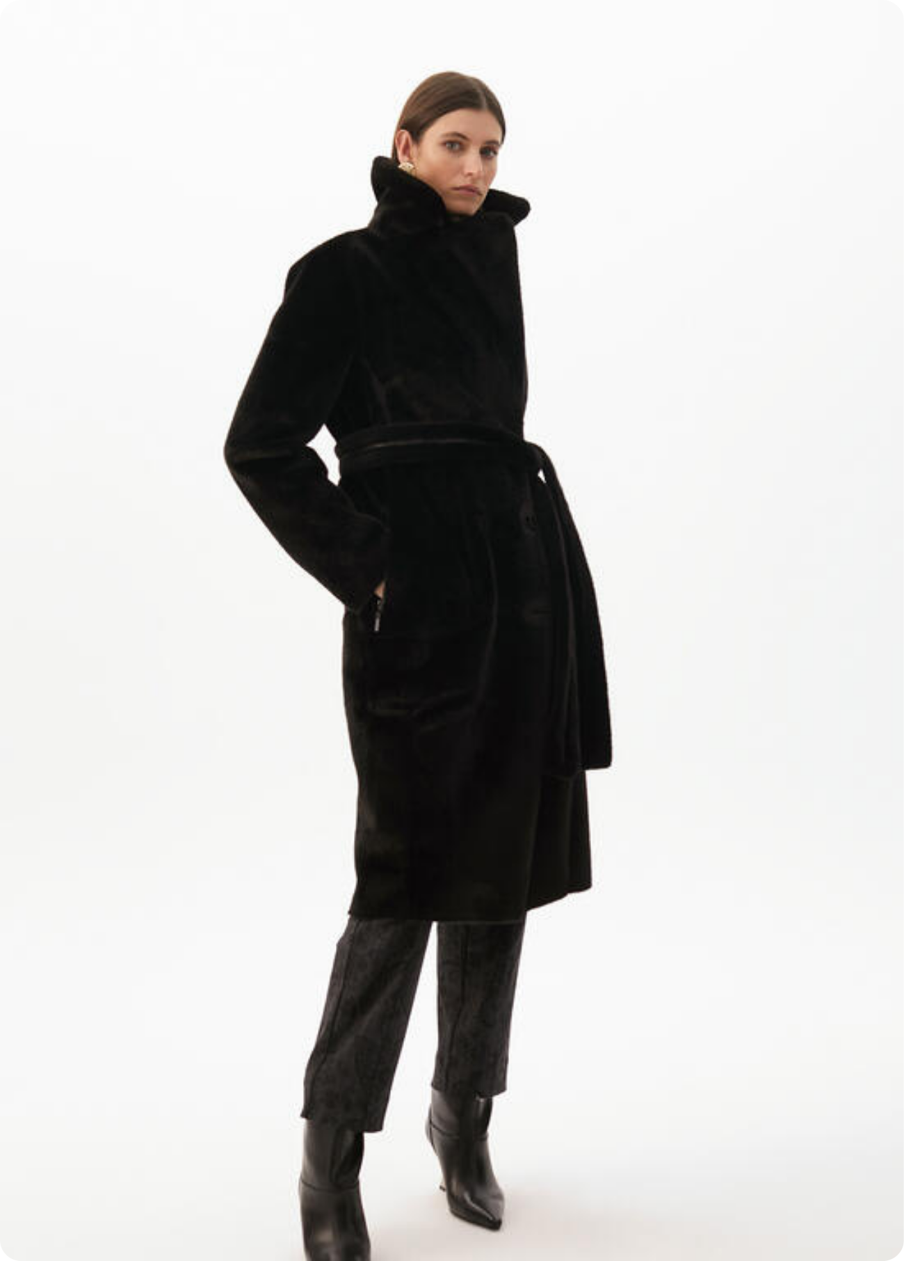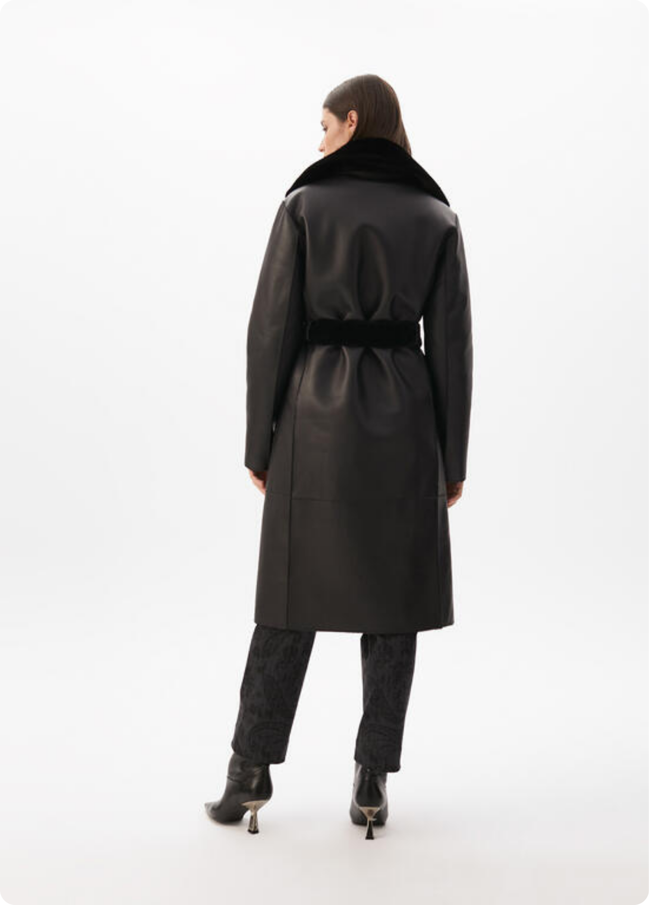 Casaco comprido dupla face em preto, com um lado em pele sintética lisa e o outro em pelo macio, oferecendo duas opções de styling numa só peça. Com cinto para marcar a cintura e bolsos laterais, é a combinação perfeita entre elegância e versatilidade. Um casaco premium que garante sofisticação e conforto em qualquer ocasião.
