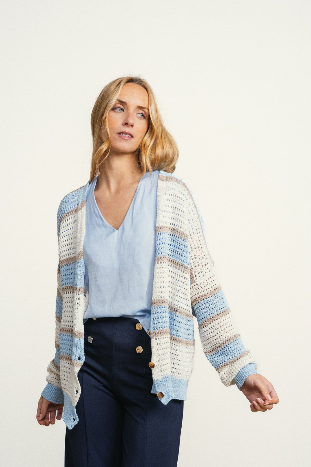 CASACO TIPO CROCHÉ ALGODÃO COM RISCAS MULTICOLOR - SMF