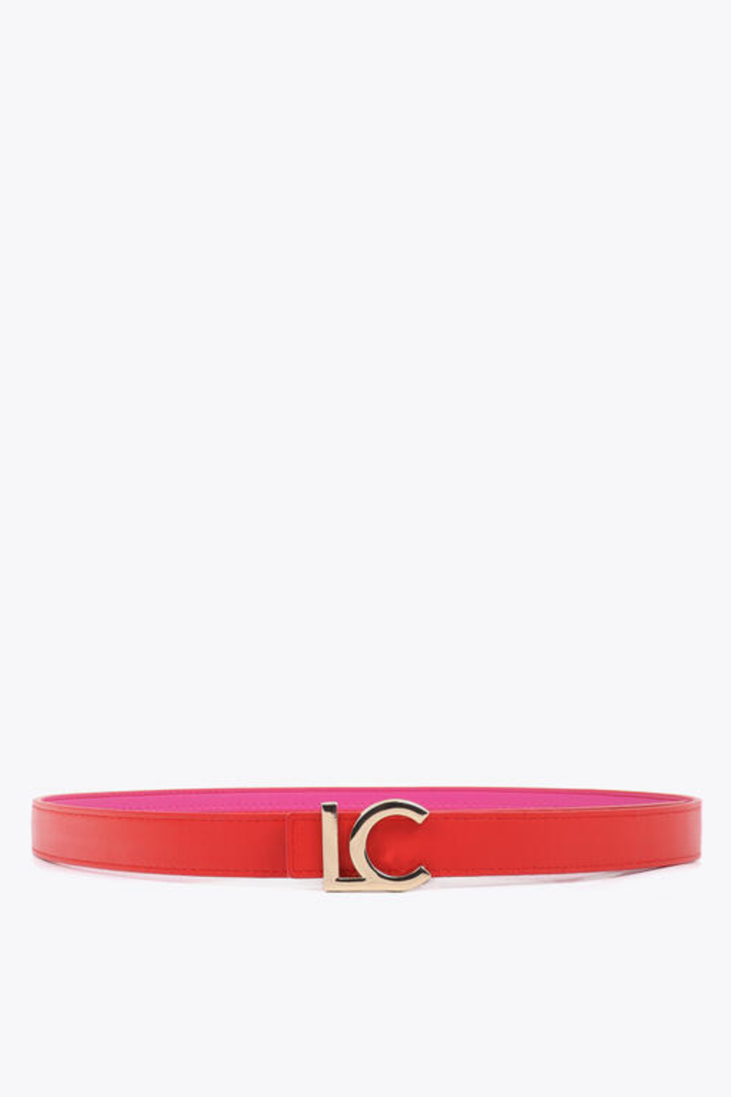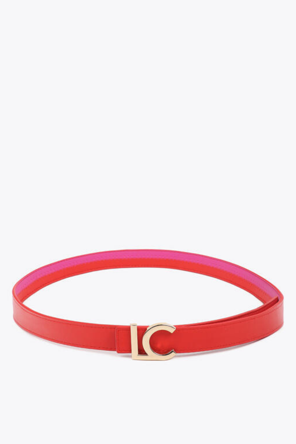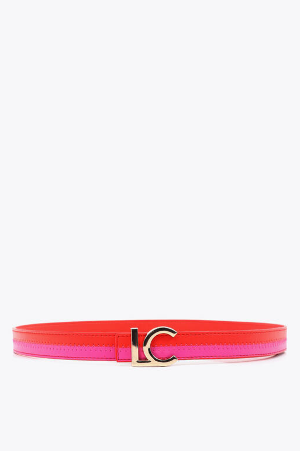 Cinto moderno em tons rosa e fúcsia, com elegante fivela dourada de logo LC. Design bicolor que traz um toque chique e distinto. Fabricado com materiais de alta qualidade para durabilidade excepcional.