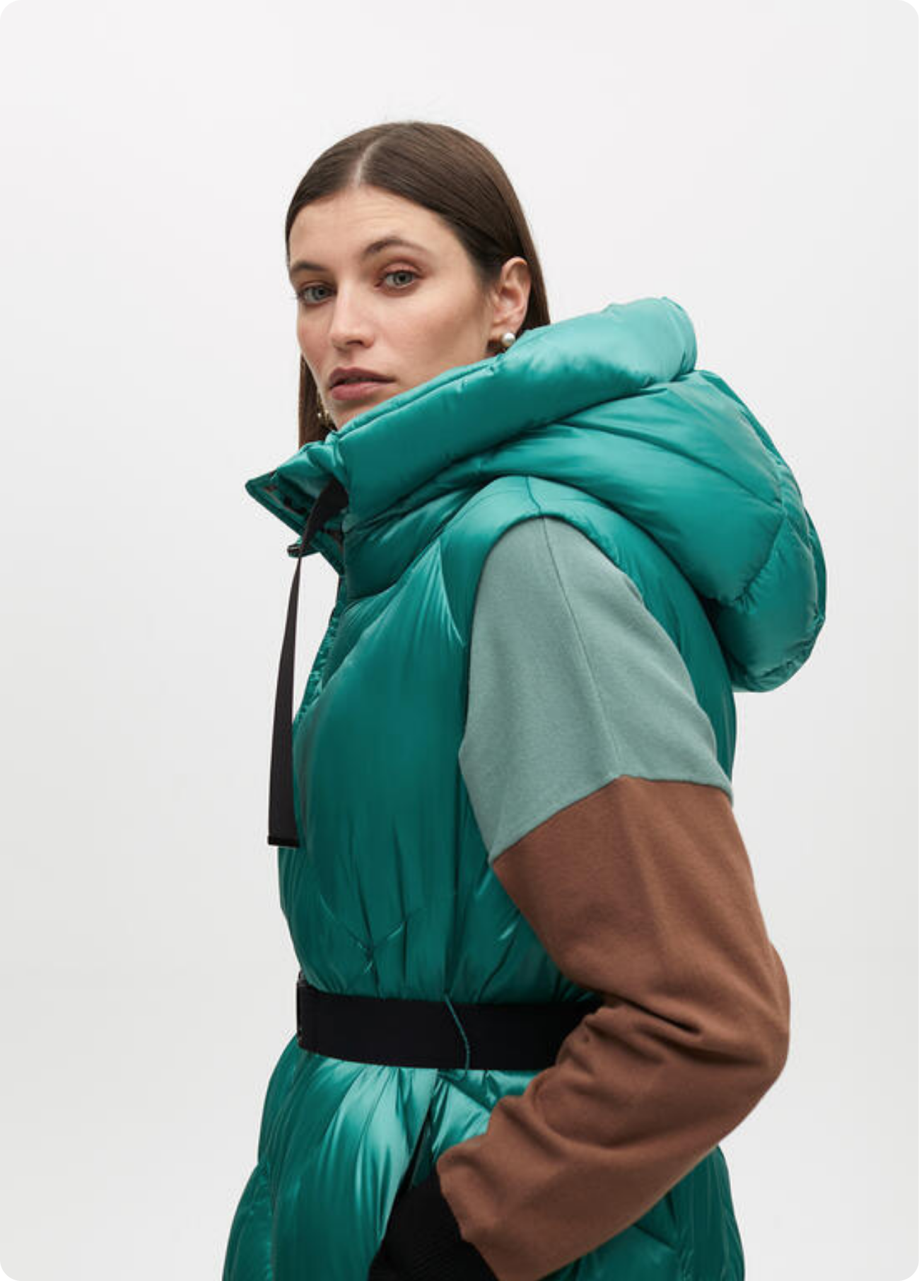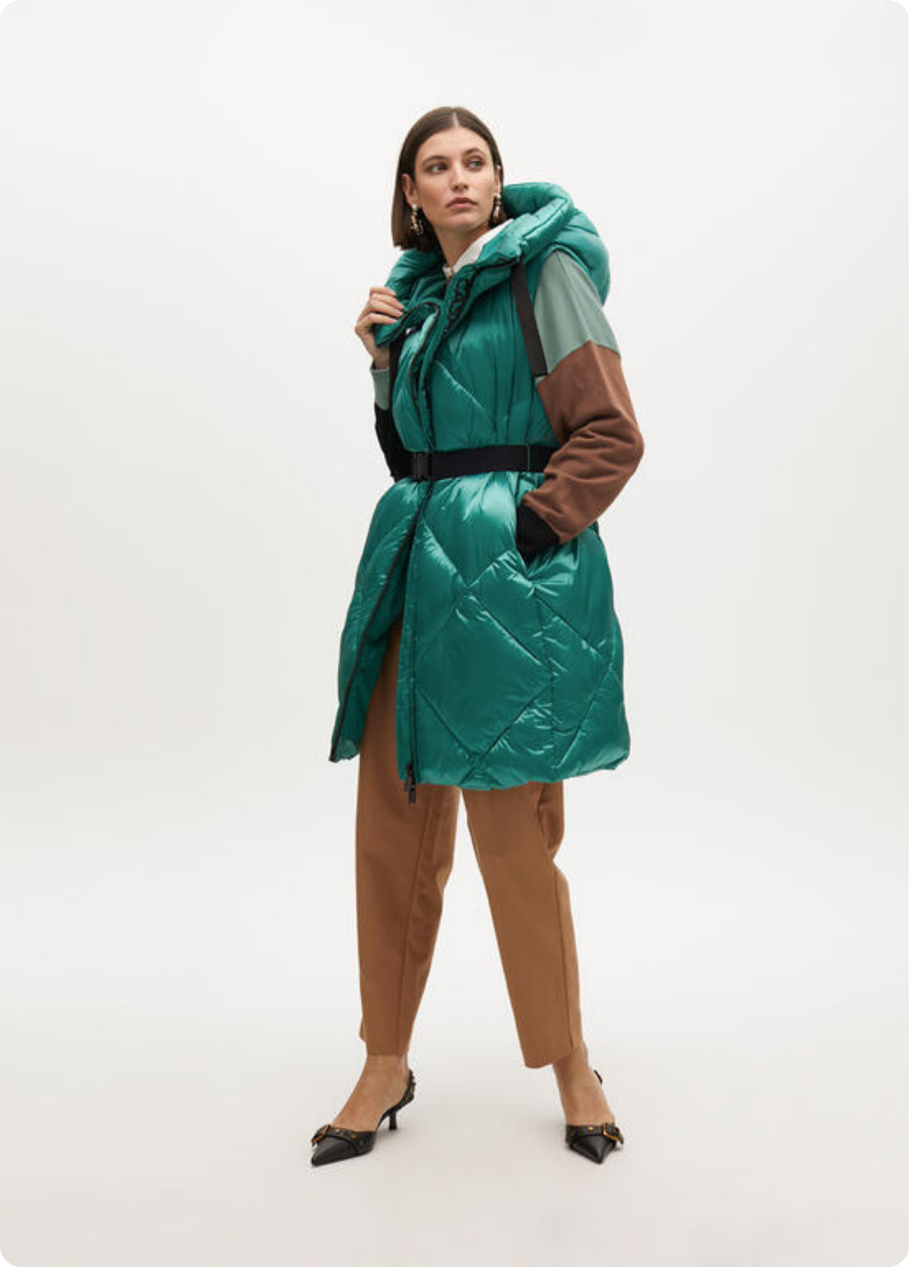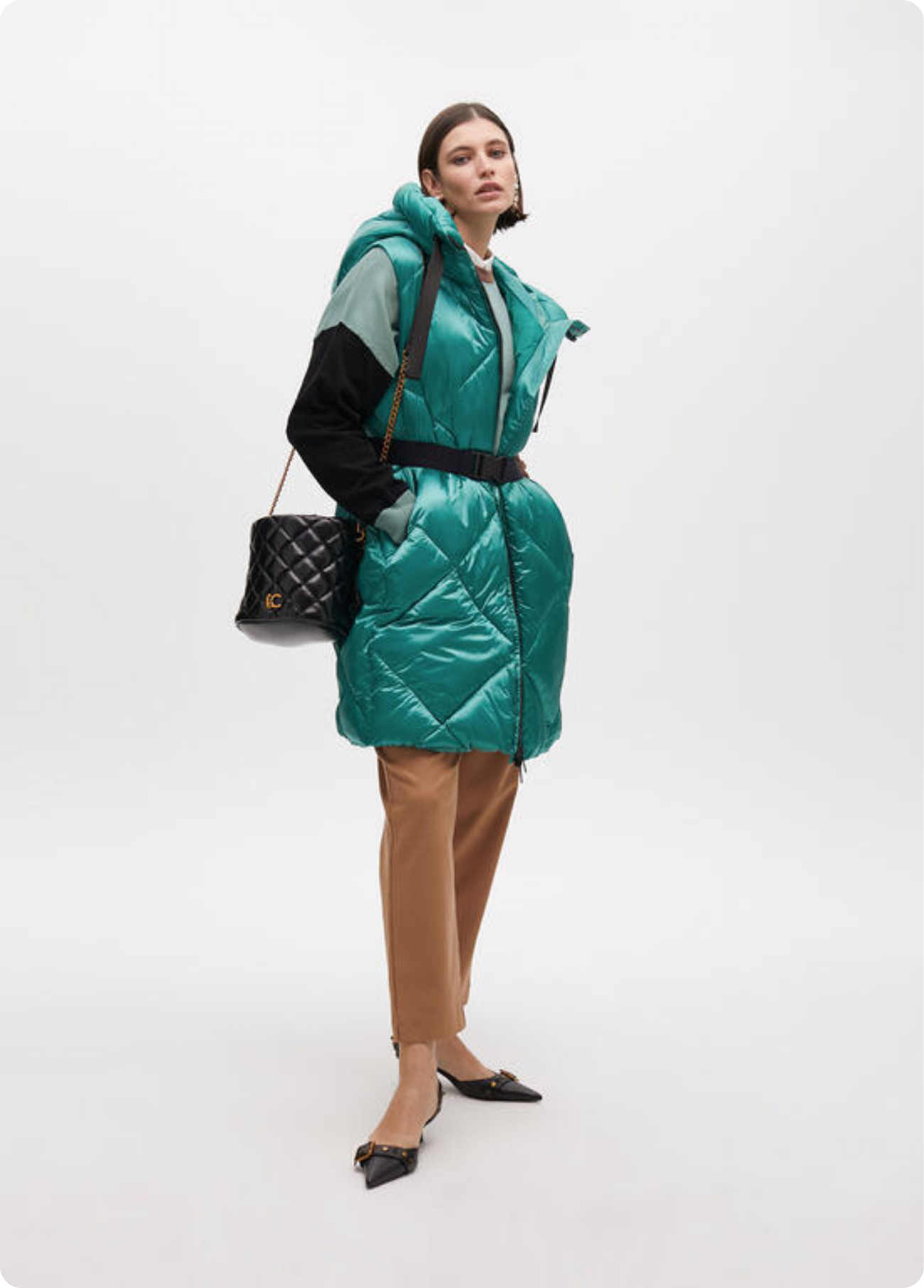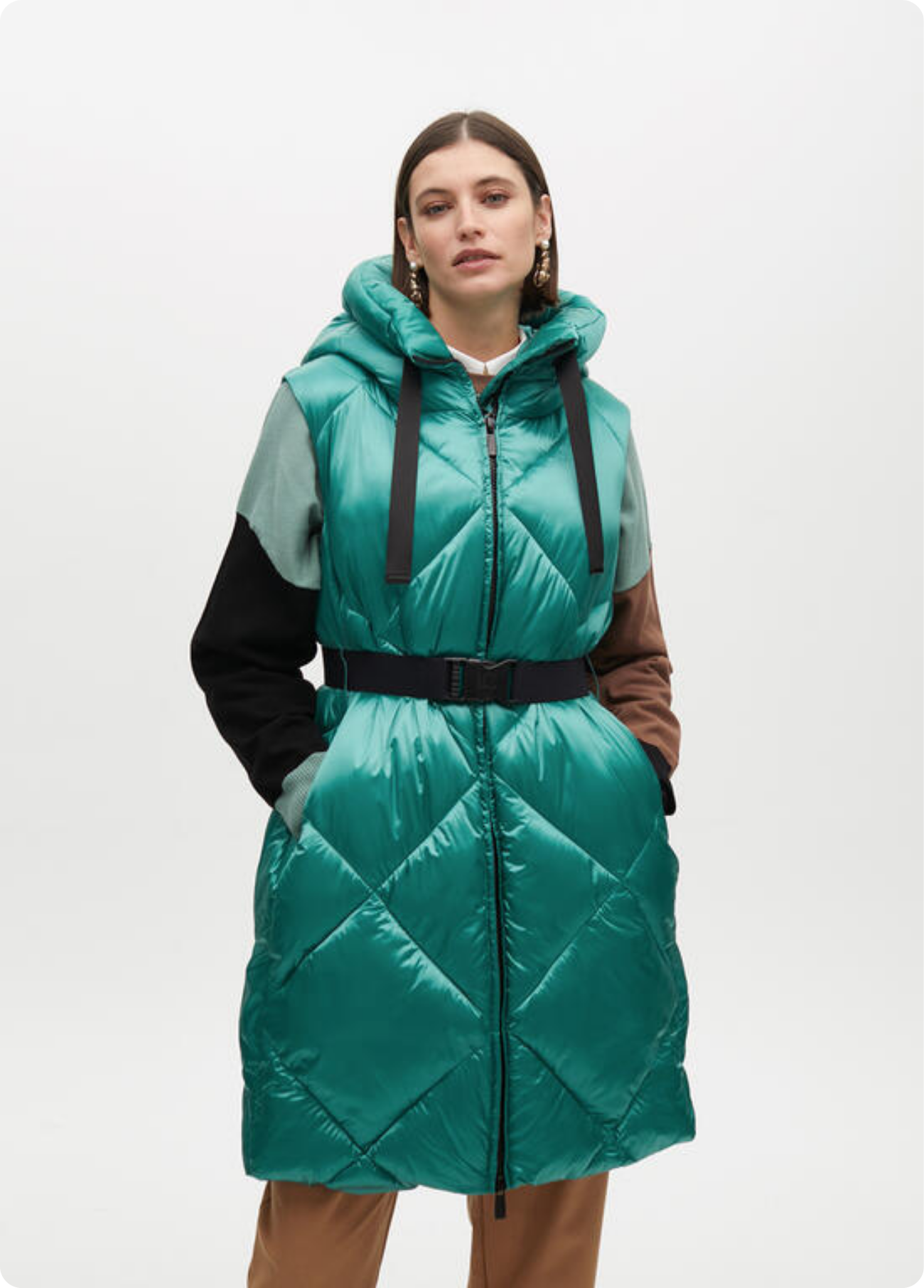 Colete acolchoado com capuz ajustável e zíper frontal. Inclui cinto para definir a silhueta. Fabricado em tecido de alta qualidade repelente à água. Ideal para dias frios com estilo e conforto. Logo discreto de Lola Casademunt na frente.