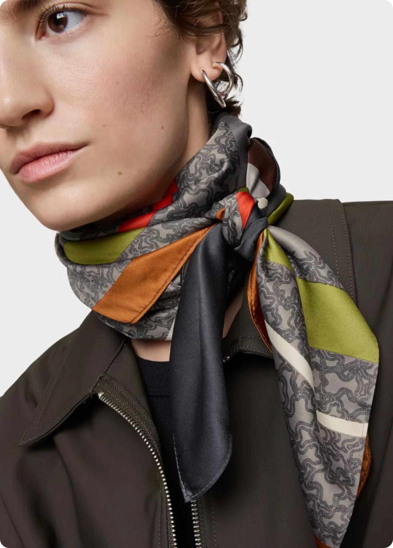 Lenço quadrado Kaos Mini Lines na cor cinzento.