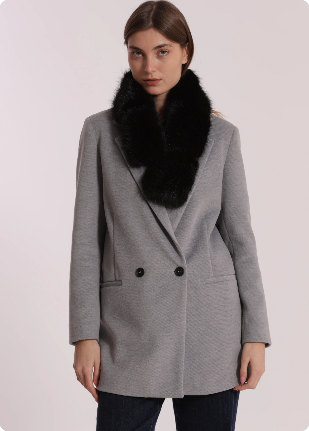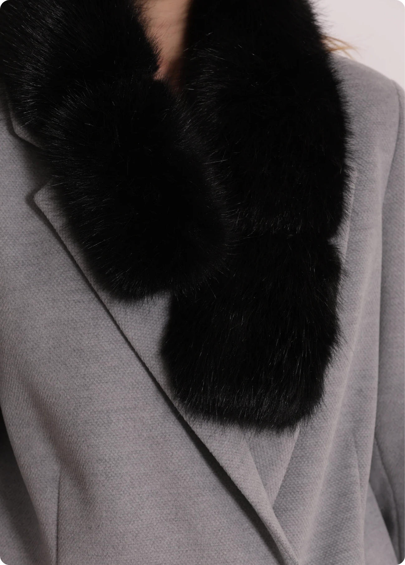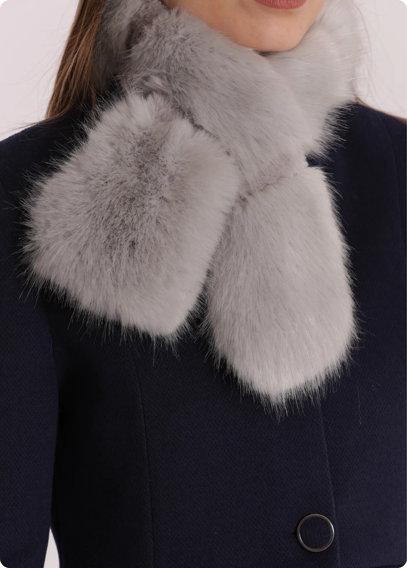 Estola de pelo sintético liso e macio, disponível em cores elegantes como azul, cinza e preto. Um acessório sofisticado que acrescenta conforto e estilo aos looks de inverno. O design moderno com fecho cruzado permite usá-la de forma prática e segura, mantendo-a no lugar durante todo o dia. Ideal para complementar casacos clássicos ou dar um toque glamoroso a produções mais casuais e urbanas.