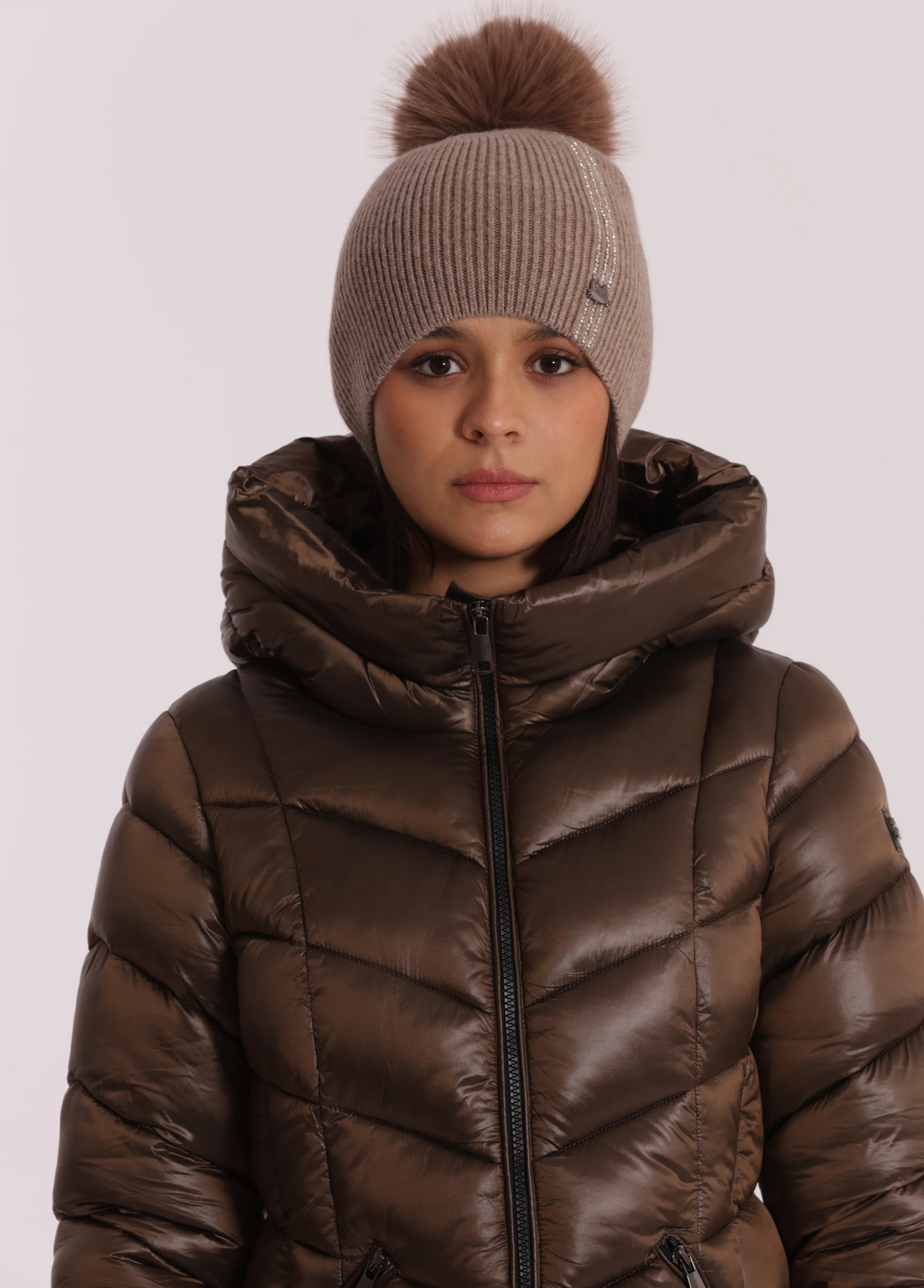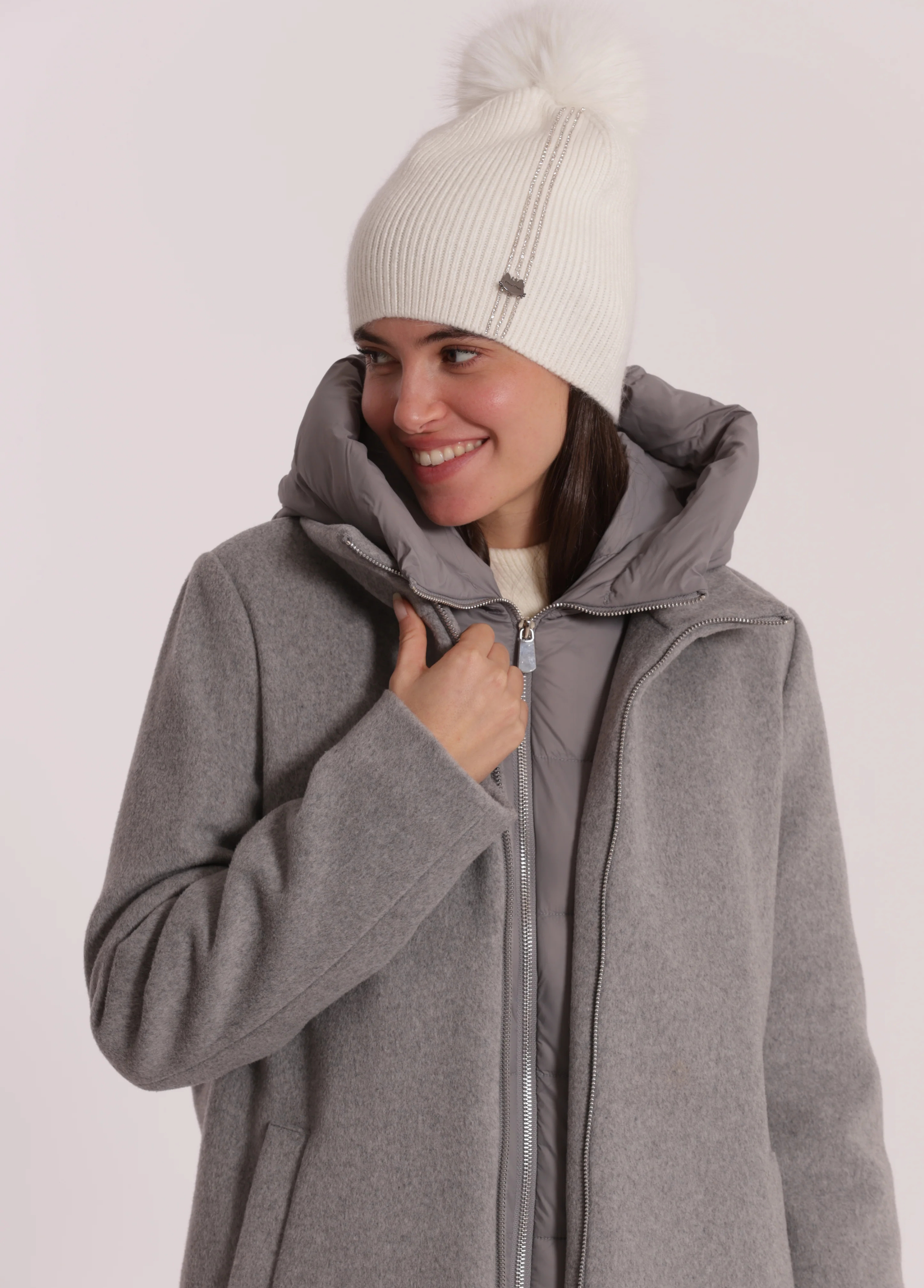 O design moderno e confortável adapta-se facilmente a qualquer tipo de rosto e combina na perfeição com casacos acolchoados ou sobretudos invernais.